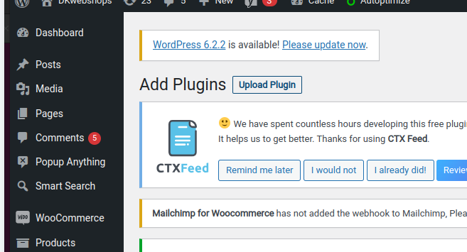 - Login to your Wordpress installation and click “Plugins ” in the menu on the left.